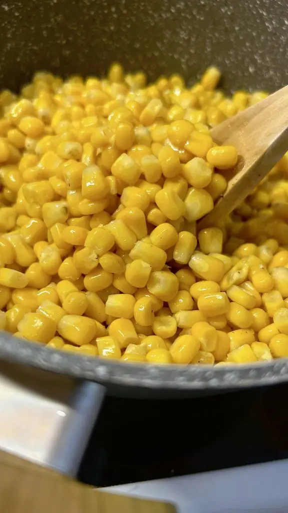 Once the corn is cooked, drain it thoroughly in a colander to remove all excess water. Transfer the drained corn into the saucepan with the butter mixture. Using a spatula, stir the corn and butter mixture well to ensure that every kernel is generously coated with the creamy buttery sauce. Serve the buttered corn immediately while it’s hot and enjoy this delicious side dish any dish you prefer.